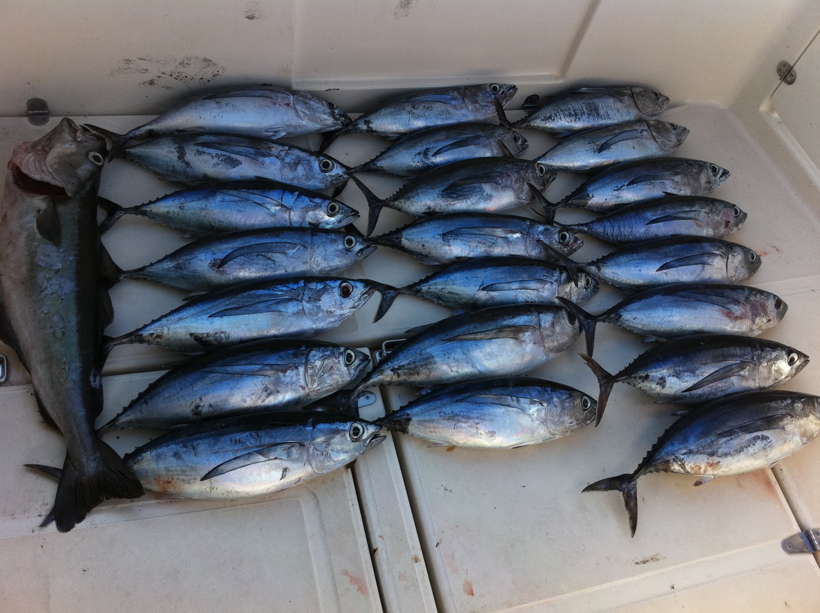 Nos costó dar con ellos pues el pescado grande no aparecía,todo monos,bonitos entre 3 y 4 kilos.La flota de tanqueo(cebo vivo)anduvo al atardecer del dia anterior por el mismo grado,y éstos no se andan con hostias,pelaron el cantil,el pescau pequeño andaba esquivo,y el grande desapareció.